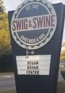 Brian: I need to interject real quick. Yes, they poke fun at vegetable eaters. Yes, there were flies outside. Yes, Jamie drank more glasses of wine (3) than she ate chicken wings (1.5). But, in fairness, they were good smoked wings if you like that style (could use a little more sauce variety). And what about the pork rinds? My buddy Danny swears by them and we recently had them after a round of golf. He usually orders three full plates (one for himself, one for his wife, and one for his kids - the man is a provider). Also, we didn't mention anything about the "swig" part of the menu. They have an ample selection of whiskey and cocktails. So, to summarize, if you like whiskey, pork fat, and smoked wings, then this place is worth checking out. They have multiple locations around Charleston and a strong following: https://swigandswinebbq.com/.